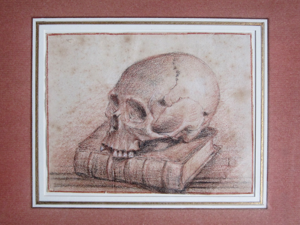 Rare dessin ancien répondant au genre de la nature morte, et plus spécifiquement à celui de la Vanité, brillamment exécuté à la sanguine.