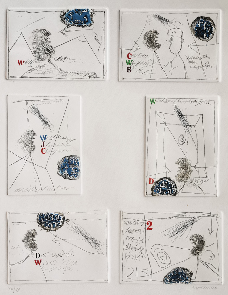 Original engraving on velum (Arches or Rives type), 6 juxtaposed coppers, limited and numbered VII/XV and handsigned in pencil by the artist65,5 cm x 58 cm