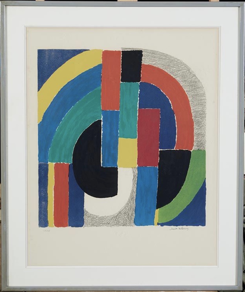 Importante lithographie originale de Sonia Delaunay, célèbre artiste française d’origine ukrainienne, figure majeure de l’art abstrait, dont l’œuvre lithographique est fortement cotée et recherchée.